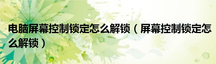 关于电脑屏幕控制锁定怎么解锁,屏幕控制锁定怎么解锁这个很多人还不知道,今天菲菲来为大家解答以上的问题,现在让我们一起来看看吧!