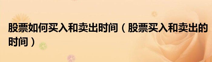 关于股票如何买入和卖出时间,股票买入和卖出的时间这个很多人还不知道,今天菲菲来为大家解答以上的问题,现在让我们一起来看看吧!