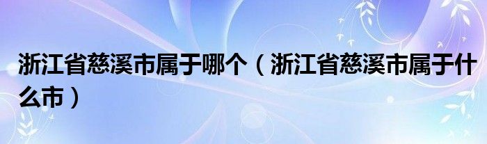 关于浙江省慈溪市属于哪个,浙江省慈溪市属于什么市这个很多人还不知道,今天菲菲来为大家解答以上的问题,现在让我们一起来看看吧!