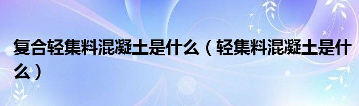 关于复合轻集料混凝土是什么,轻集料混凝土是什么这个很多人还不知道,今天菲菲来为大家解答以上的问题,现在让我们一起来看看吧!