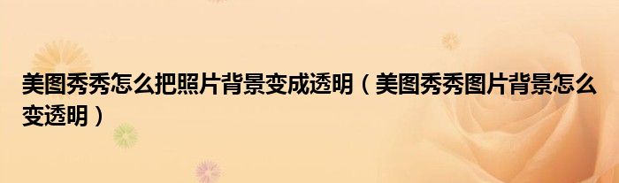 关于美图秀秀怎么把照片背景变成透明,美图秀秀图片背景怎么变透明这个很多人还不知道,今天菲菲来为大家解答以上的问题,现在让我们一起来看看吧!