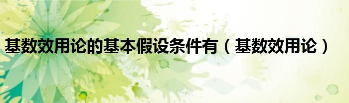 关于基数效用论的基本假设条件有,基数效用论这个很多人还不知道,今天菲菲来为大家解答以上的问题,现在让我们一起来看看吧!