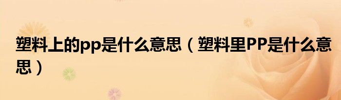 关于塑料上的pp是什么意思,塑料里PP是什么意思这个很多人还不知道,今天菲菲来为大家解答以上的问题,现在让我们一起来看看吧!