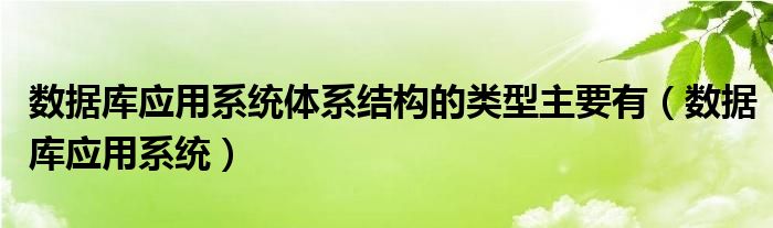 关于数据库应用系统体系结构的类型主要有,数据库应用系统这个很多人还不知道,今天菲菲来为大家解答以上的问题,现在让我们一起来看看吧!