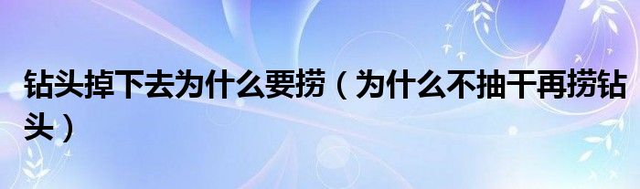 钻头掉下去为什么要捞(为什么不抽干再捞钻头)