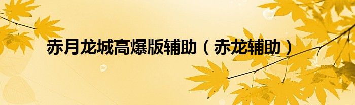 关于赤月龙城高爆版辅助,赤龙辅助这个很多人还不知道,今天菲菲来为大家解答以上的问题,现在让我们一起来看看吧!