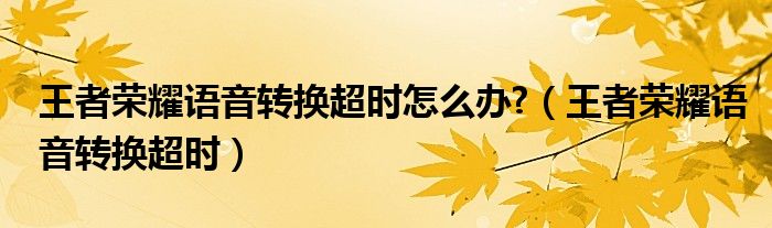 大家好,小晋来为大家解答以下问题,关于王者荣耀语音转换超时怎么办?,王者荣耀语音转换超时很多人还不知道,今天让我们一起来看看吧!
