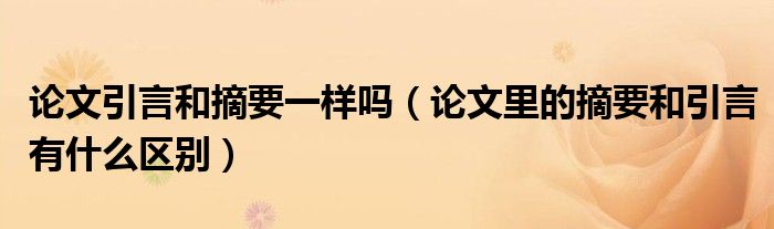 关于论文引言和摘要一样吗,论文里的摘要和引言有什么区别这个很多人还不知道,今天菲菲来为大家解答以上的问题,现在让我们一起来看看吧!