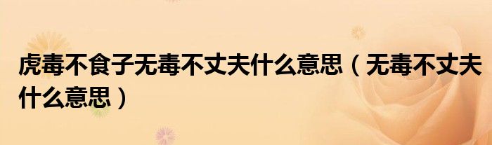 关于虎毒不食子无毒不丈夫什么意思,无毒不丈夫什么意思这个很多人还不知道,今天菲菲来为大家解答以上的问题,现在让我们一起来看看吧!