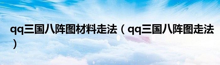 关于qq三国八阵图材料走法,qq三国八阵图走法这个很多人还不知道,今天菲菲来为大家解答以上的问题,现在让我们一起来看看吧!