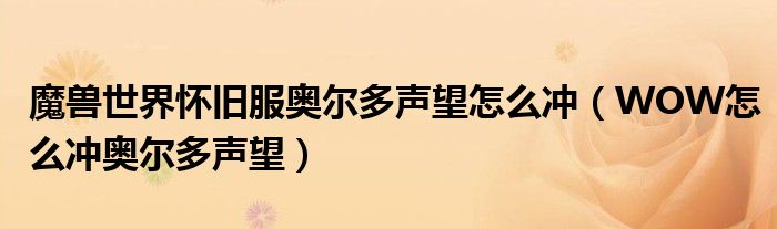 关于魔兽世界怀旧服奥尔多声望怎么冲,WOW怎么冲奥尔多声望这个很多人还不知道,今天菲菲来为大家解答以上的问题,现在让我们一起来看看吧!