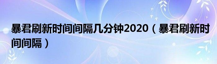 大家好,小飞来为大家解答以上问题,暴君刷新时间间隔几分钟2020,暴君刷新时间间隔很多人还不知道,现在让我们一起来看看吧!