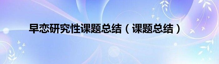 关于早恋研究性课题总结,课题总结这个很多人还不知道,今天菲菲来为大家解答以上的问题,现在让我们一起来看看吧!