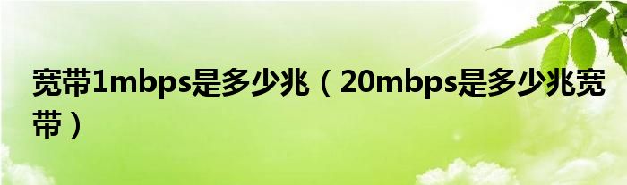 大家好,小晋来为大家解答以下问题,关于宽带1mbps是多少兆,20mbps是多少兆宽带很多人还不知道,今天让我们一起来看看吧!