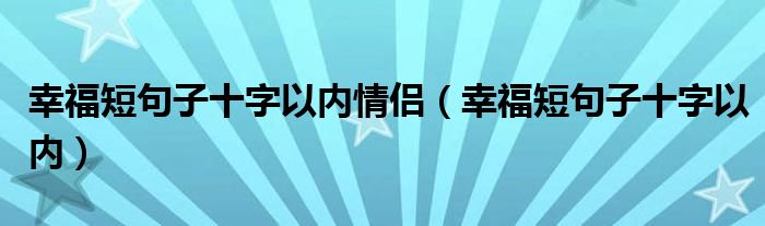 大家好,小晋来为大家解答以下问题,关于幸福短句子十字以内情侣,幸福短句子十字以内很多人还不知道,今天让我们一起来看看吧!