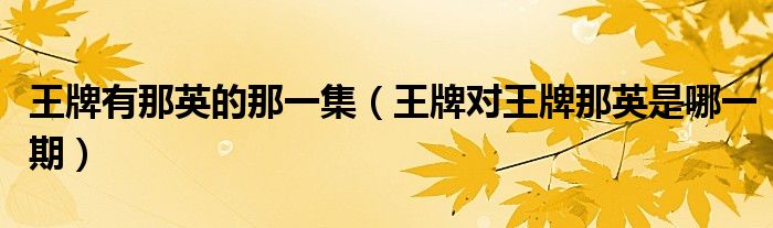 大家好,小晋来为大家解答以下问题,关于王牌有那英的那一集,王牌对王牌那英是哪一期很多人还不知道,今天让我们一起来看看吧!