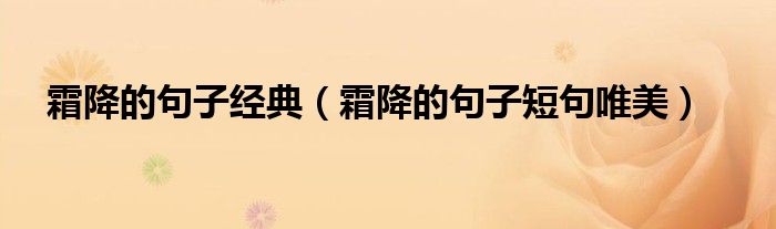 大家好,雨雨来为大家解答以上问题,霜降的句子经典,霜降的句子短句唯美很多人还不知道,现在让我们一起来看看吧!