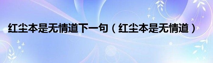 大家好,小晋来为大家解答以下问题,关于红尘本是无情道下一句,红尘本是无情道很多人还不知道,今天让我们一起来看看吧!