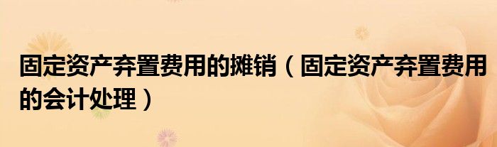 关于固定资产弃置费用的摊销,固定资产弃置费用的会计处理这个很多人还不知道,今天菲菲来为大家解答以上的问题,现在让我们一起来看看吧!