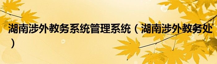 湖南涉外教务系统管理系统(湖南涉外教务处)