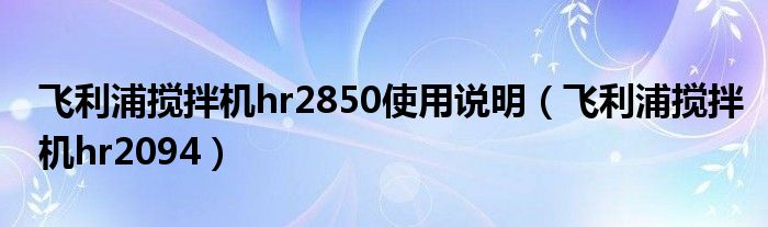 飞利浦搅拌机hr2850使用说明,飞利浦搅拌机hr2094很多人还不知道,乐乐来为大家解答以上问题,现在让我们一起来看看吧!