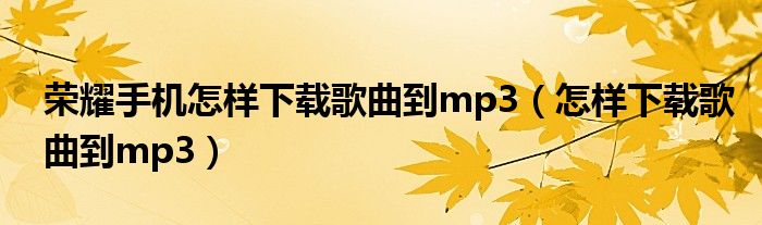 荣耀手机怎样下载歌曲到mp3(怎样下载歌曲到mp3)