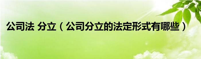 关于公司法 分立,公司分立的法定形式有哪些这个很多人还不知道,今天菲菲来为大家解答以上的问题,现在让我们一起来看看吧!