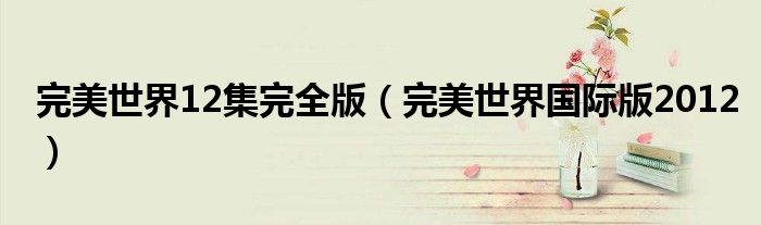 大家好,雨雨来为大家解答以上问题,完美世界12集完全版,完美世界国际版2012很多人还不知道,现在让我们一起来看看吧!