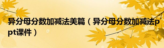 关于异分母分数加减法美篇,异分母分数加减法ppt课件这个很多人还不知道,今天菲菲来为大家解答以上的问题,现在让我们一起来看看吧!1、是的.。本文到此分享完毕,希望对大家有所帮助。