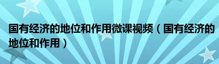 国有经济的地位和作用微课视频(国有经济的地位和作用)