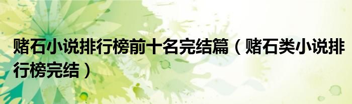 关于赌石小说排行榜前十名完结篇,赌石类小说排行榜完结这个很多人还不知道,今天菲菲来为大家解答以上的问题,现在让我们一起来看看吧!