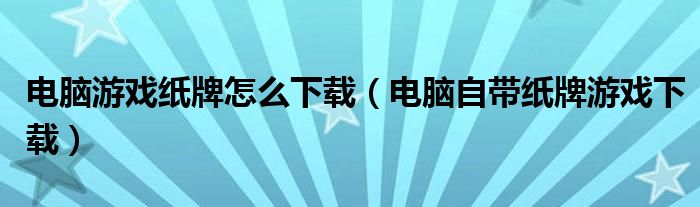 关于电脑游戏纸牌怎么下载,电脑自带纸牌游戏下载这个很多人还不知道,今天菲菲来为大家解答以上的问题,现在让我们一起来看看吧!