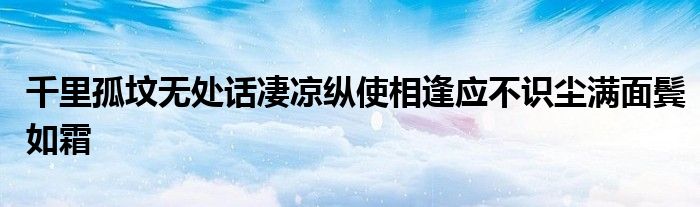 关于千里孤坟无处话凄凉纵使相逢应不识尘满面鬓如霜这个很多人还不知道,今天菲菲来为大家解答以上的问题,现在让我们一起来看看吧!