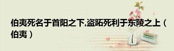 关于伯夷死名于首阳之下,盗跖死利于东陵之上,伯夷这个很多人还不知道,今天菲菲来为大家解答以上的问题,现在让我们一起来看看吧!