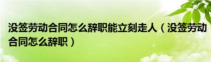 大家好,小晋来为大家解答以下问题,关于没签劳动合同怎么辞职能立刻走人,没签劳动合同怎么辞职很多人还不知道,今天让我们一起来看看吧!