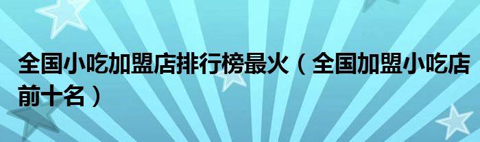 大家好,小晋来为大家解答以下问题,关于全国小吃加盟店排行榜最火,全国加盟小吃店前十名很多人还不知道,今天让我们一起来看看吧!