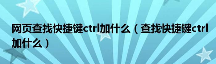 大家好,小晋来为大家解答以下问题,关于网页查找快捷键ctrl加什么,查找快捷键ctrl加什么很多人还不知道,今天让我们一起来看看吧!