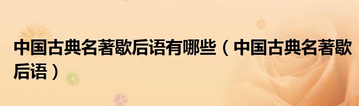 大家好,小晋来为大家解答以下问题,关于中国古典名著歇后语有哪些,中国古典名著歇后语很多人还不知道,今天让我们一起来看看吧!