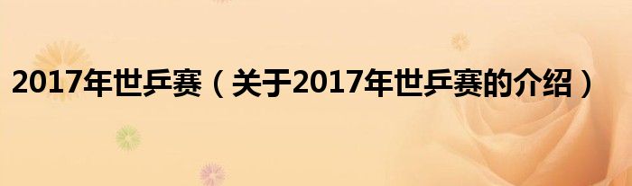 1、2017年世界乒乓球锦标赛是于2017年5月29日至6月5日在德国杜塞尔多夫举行的体育赛事。