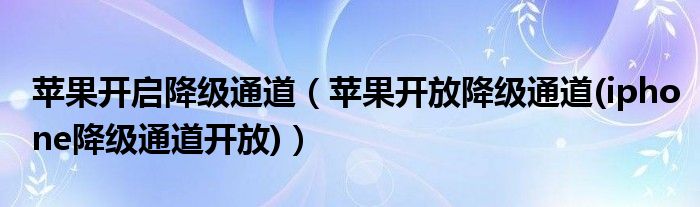三.苹果降级通道是什么意思?: