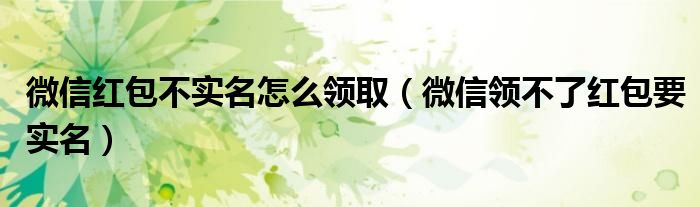 大家好,小晋来为大家解答以下问题,关于微信红包不实名怎么领取,微信领不了红包要实名很多人还不知道,今天让我们一起来看看吧!