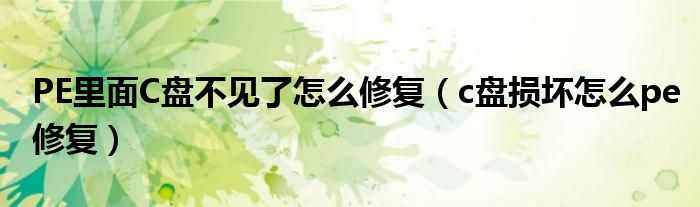 PE里面C盘不见了怎么修复(c盘损坏怎么pe修复)