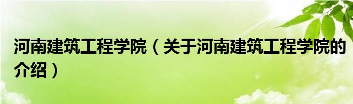 大家好,今天小乐来为大家解答以上的问题。河南建筑工程学院,关于河南建筑工程学院的介绍很多人还不知道,现在让我们一起来看看吧!