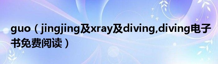 大家好,小常来为大家解答以上问题。guo,jingjing及xray及diving,diving电子书免费阅读很多人还不知道,现在让我们一起来看看吧!