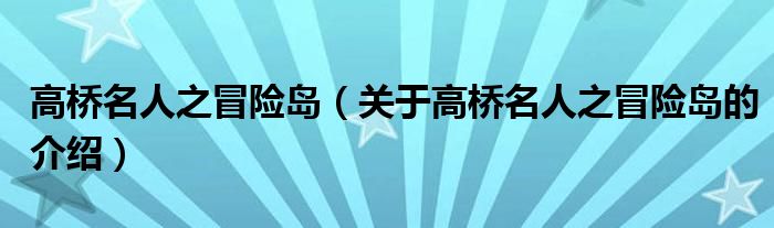 高桥名人之冒险岛(关于高桥名人之冒险岛的介绍)