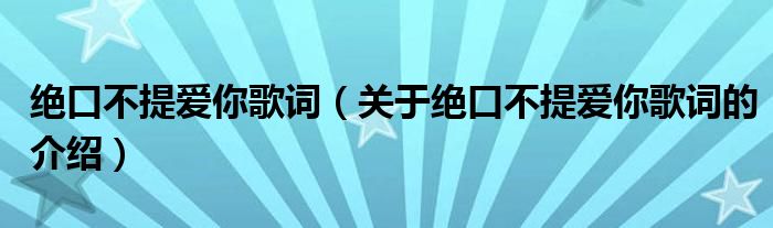 大家好,今天小乐来为大家解答以上的问题。绝口不提爱你歌词,关于绝口不提爱你歌词的介绍很多人还不知道,现在让我们一起来看看吧!