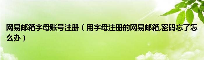 大家好,今天小悦来为大家解答以上问题。网易邮箱字母账号注册,用字母注册的网易邮箱,密码忘了怎么办很多人还不知道,现在让我们一起来看看吧!