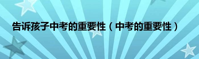 关于告诉孩子中考的重要性,中考的重要性这个很多人还不知道,今天菲菲来为大家解答以上的问题,现在让我们一起来看看吧!