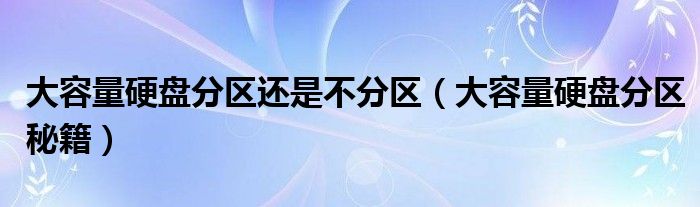 大家好,今天小悦来为大家解答以上问题。大容量硬盘分区还是不分区,大容量硬盘分区秘籍很多人还不知道,现在让我们一起来看看吧!