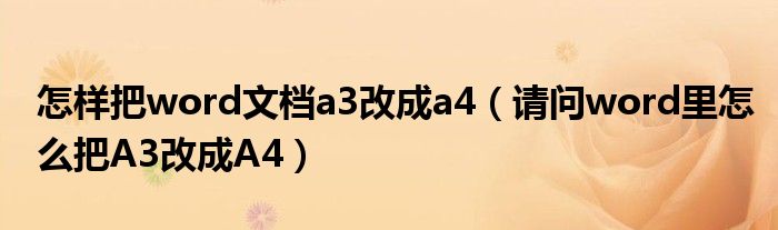 关于怎样把word文档a3改成a4,请问word里怎么把A3改成A4这个很多人还不知道,今天菲菲来为大家解答以上的问题,现在让我们一起来看看吧!